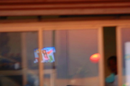 夕日がお店の窓に、映える。