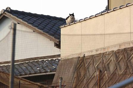 見上げると猫が。